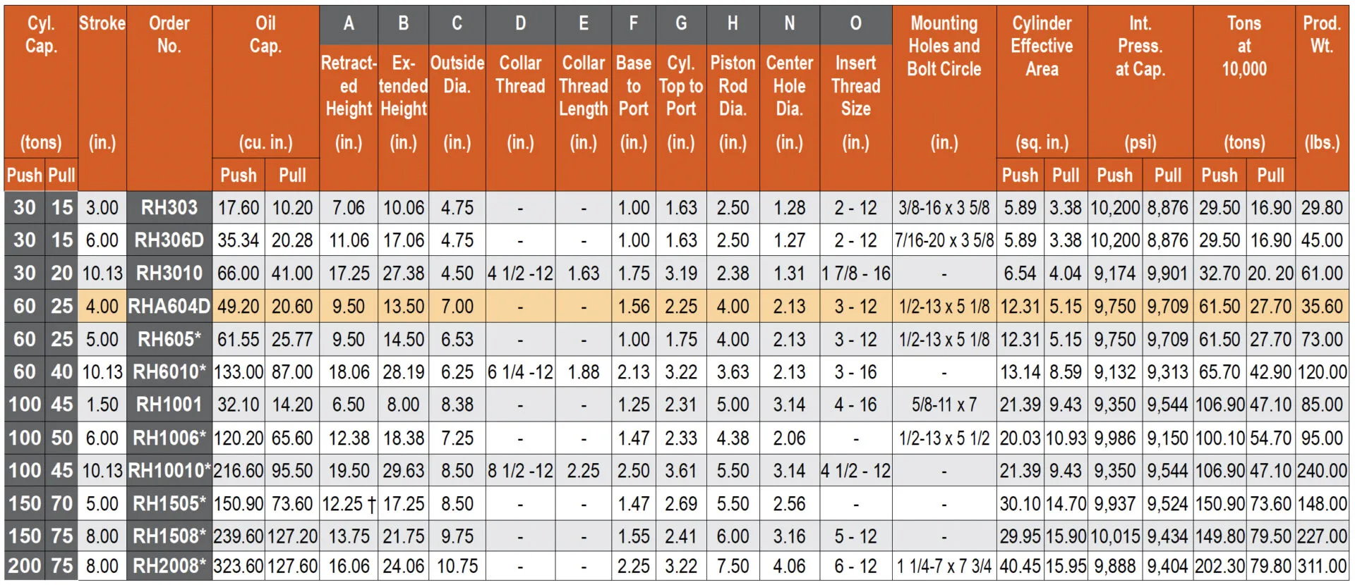 The Power Team RHA306 is a 30-ton, double-acting center-hole hydraulic cylinder engineered for precision pulling, tensioning, and rod-through applications where controlled bidirectional force is required. Its annular design enables direct alignment over studs, cables, or tie-rods, while the double-acting configuration provides positive retraction under load, reducing cycle times and improving operational consistency. The honed steel cylinder body and wear-optimized seals maintain pressure integrity during high-duty cycles and resist deformation under full-capacity compressive loading.